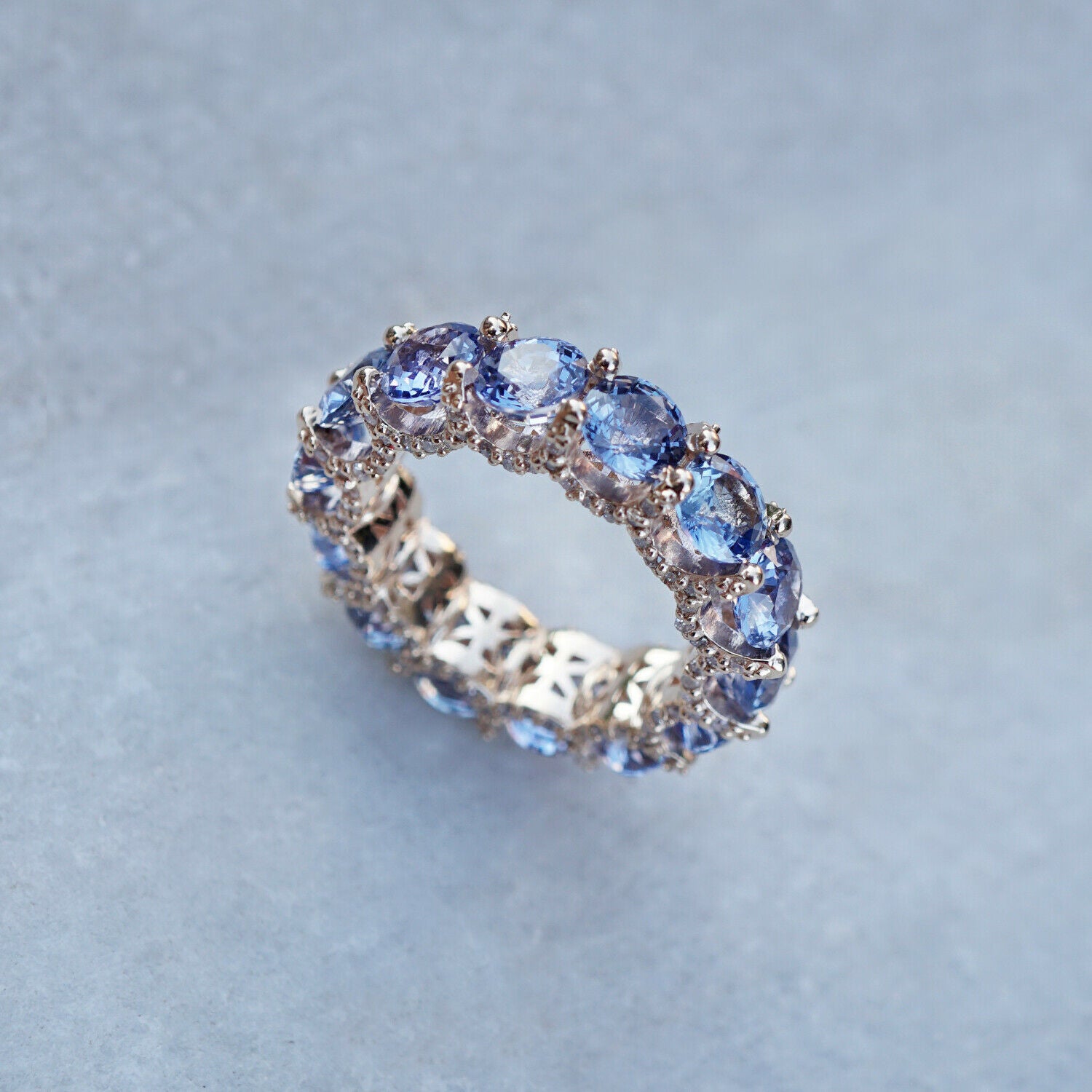 0.75 CT Blue Sapphire Diamond Wedding Full Eternity Band Ring 925 Sterling Silver