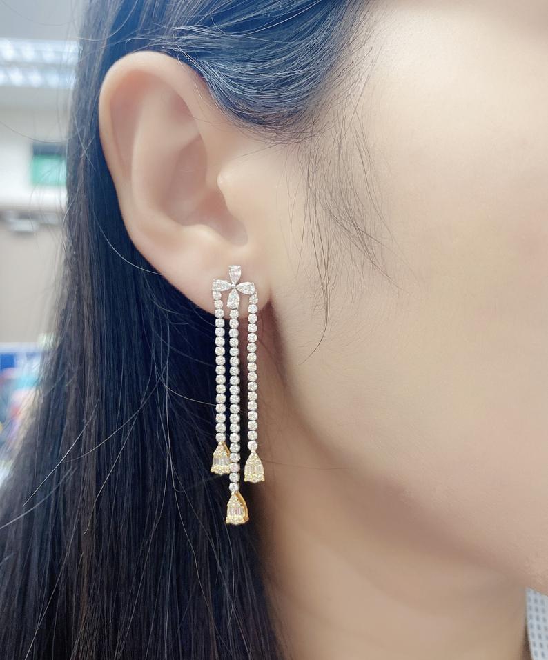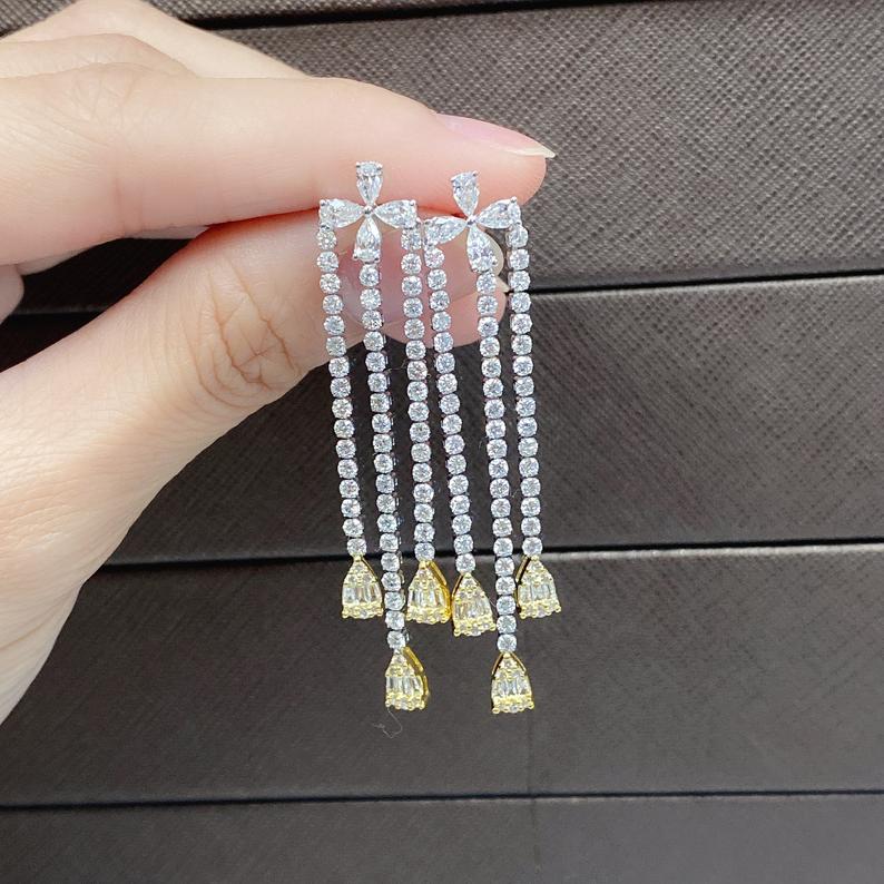 4.50 Ct Brilliant Cut Yellow Sapphire & White CZ 925 Sterling Silver Engagement Dangle Earrings