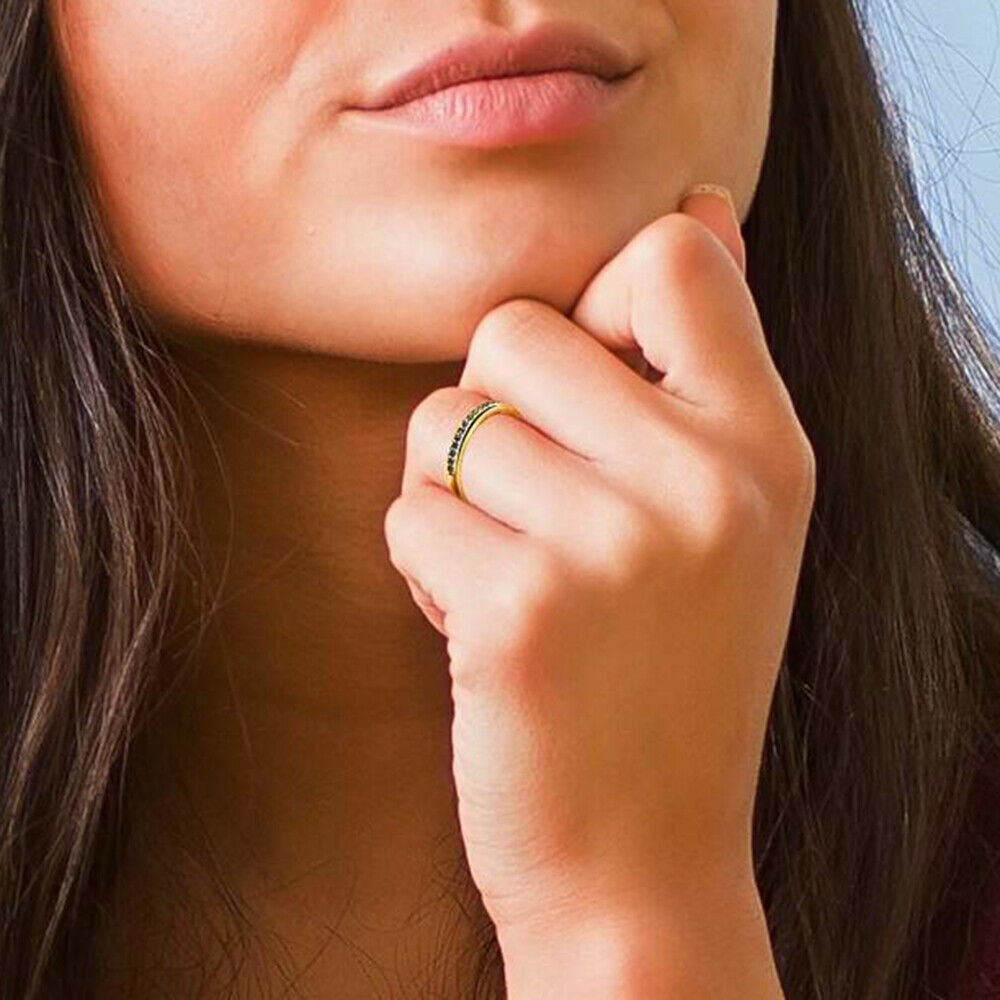 0.25 Ct Round Cut Black Diamond 14k Yellow Gold Finish Eternity Wedding Anniversary Band Ring 925 Sterling Silver