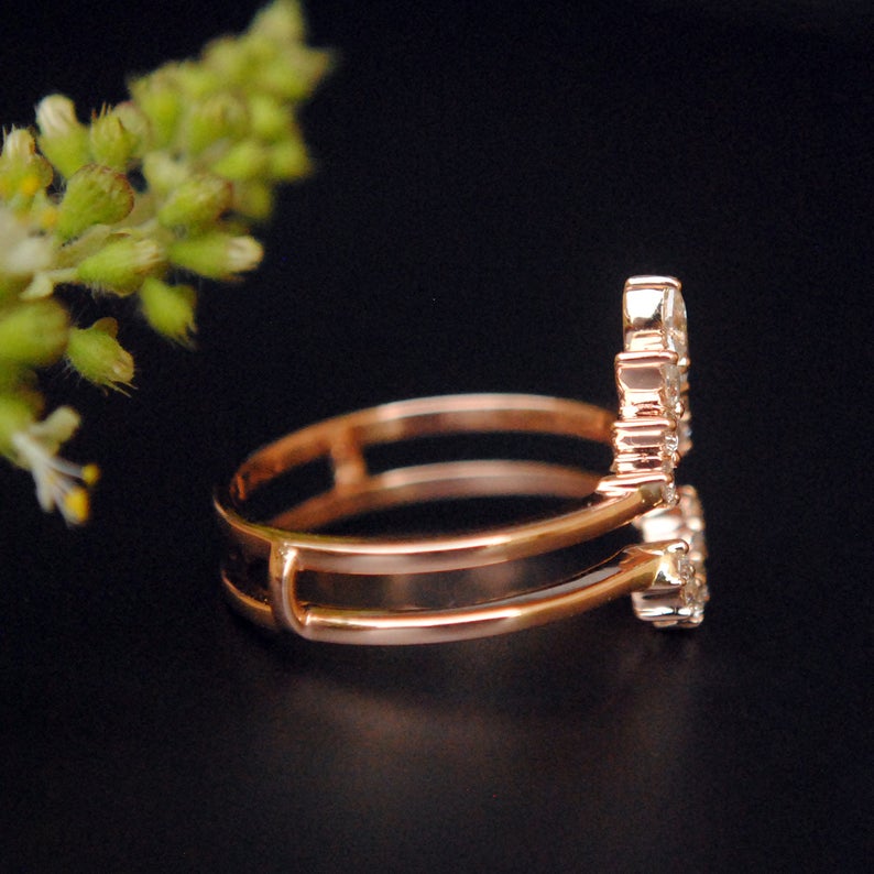 0.75 CT Marquise Pear & Diamond Ring Guard 925 Sterling Silver Wedding Band