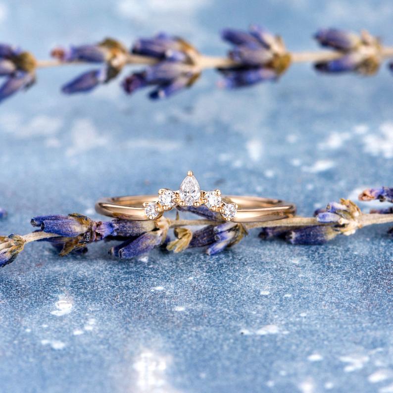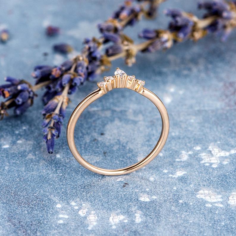 0.75 CT Pear Cut Diamond Rose Gold Over On 925 Sterling Silver Wedding Band Ring