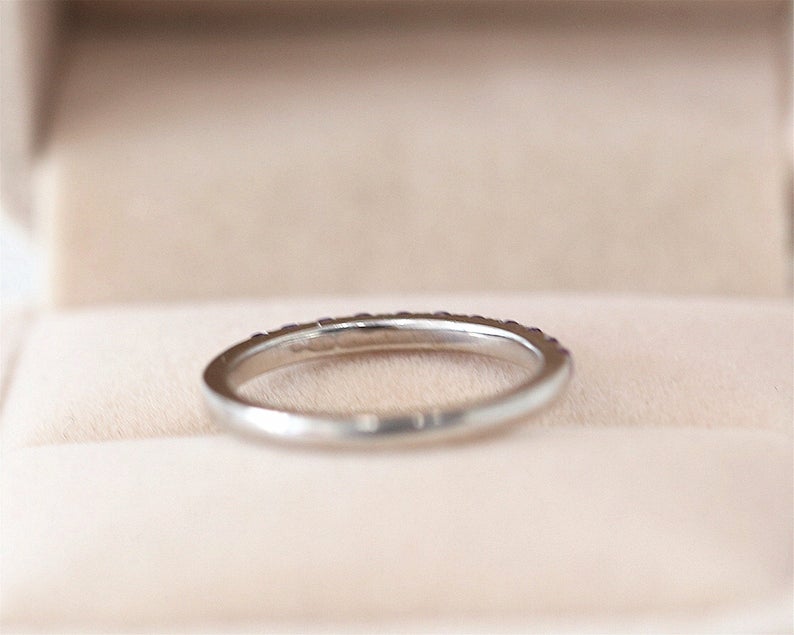 0.75 CT Round Cut Amethyst Diamond 925 Sterling Silver Half Eternity Wedding Ring