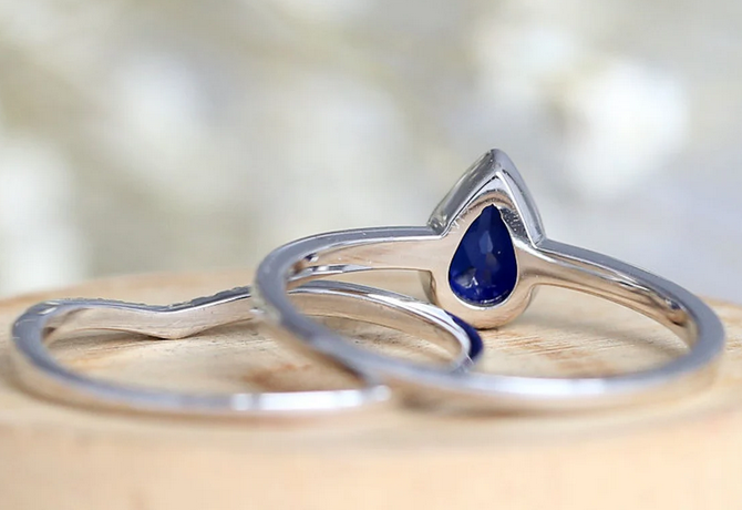 1 CT Pear Cut Blue Sapphire White Gold Over On 925 Sterling Silver Solitaire Engagement Ring Set