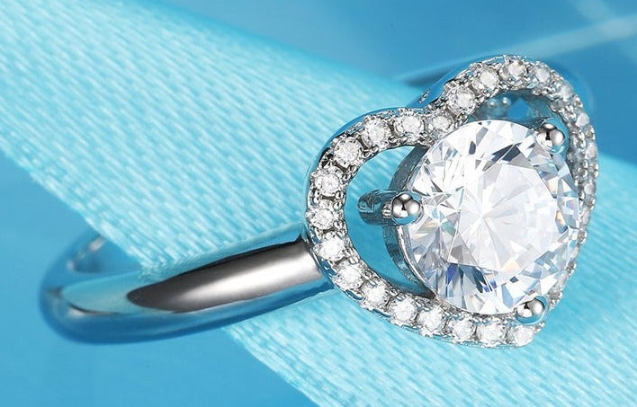 1 CT Round Cut Diamond 925 Sterling Silver Unisex Engagement Heart Shape Gift Ring