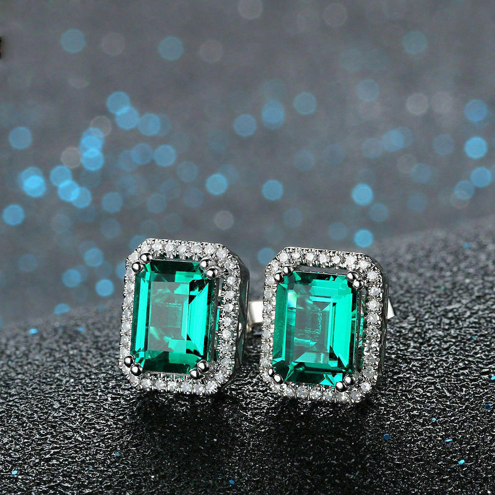 2.50 Ct Emerald Cut Green Emerald 925 Sterling Silver Halo Engagement Stud Earrings