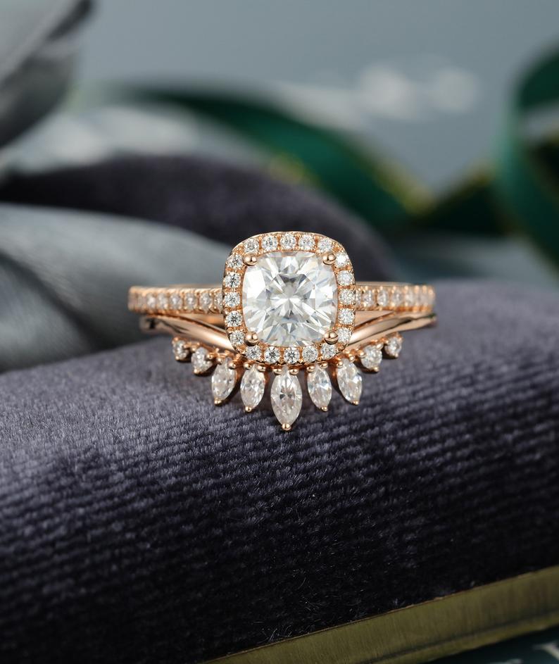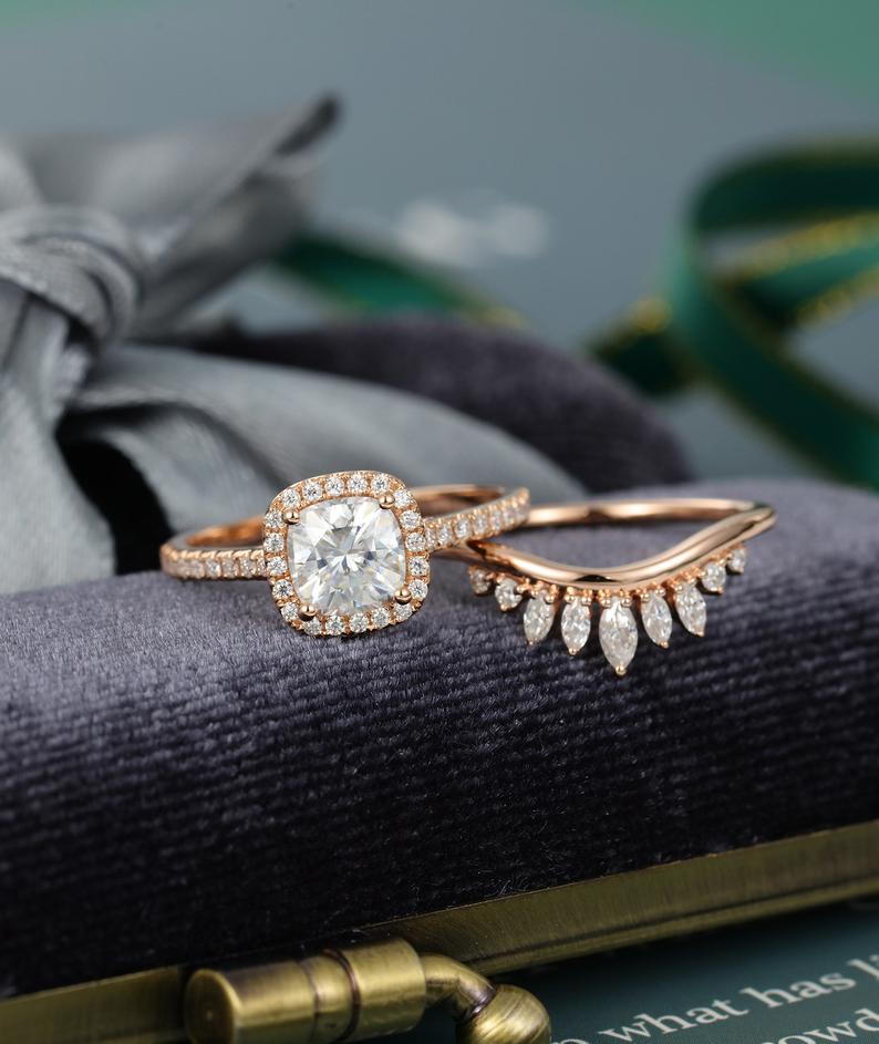 2.75 Ct Cushion Cut 925 Sterling Silver Halo Engagement Bridal Ring Set