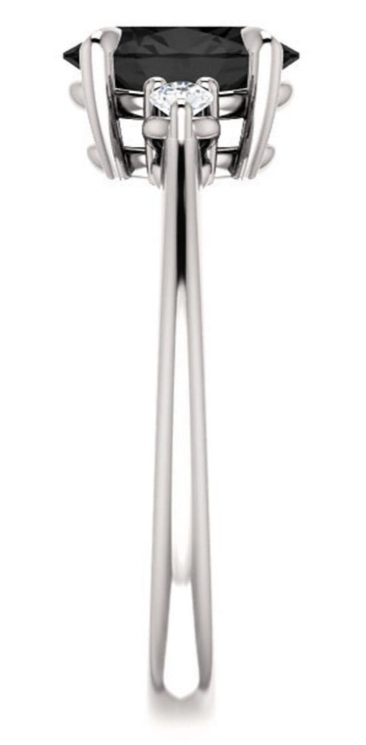 2 CT Oval Cut Round Cut Black Cubic Zirconia Diamond 925 Sterling Silver Unisex Anniversary Ring