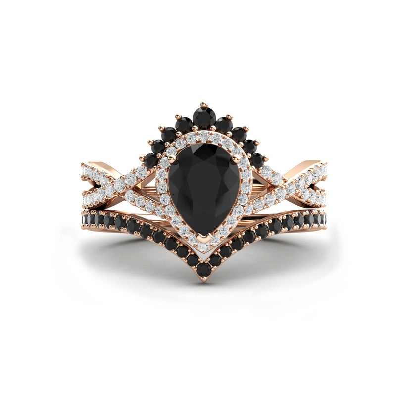 3 CT Pear Cut Black Onyx Diamond 925 Sterling Silver Women Wedding Bridal Set Promise Ring